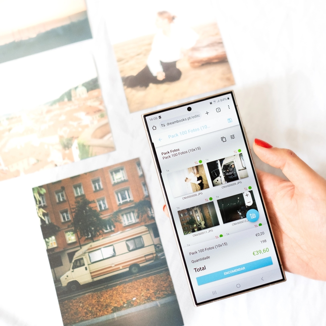 Para encomendar as tuas fotos, segue estes passos: 1. Vai à página das Fotos Standard no nosso site. 2. Escolhe a opção de fotos 10x15cm (1 a 49 unidades). 3. Importa as tuas fotos preferidas. 4. No processo de checkout, aplica o código recebido por e-mail para validar o envio gratuito conforme o teu pack.